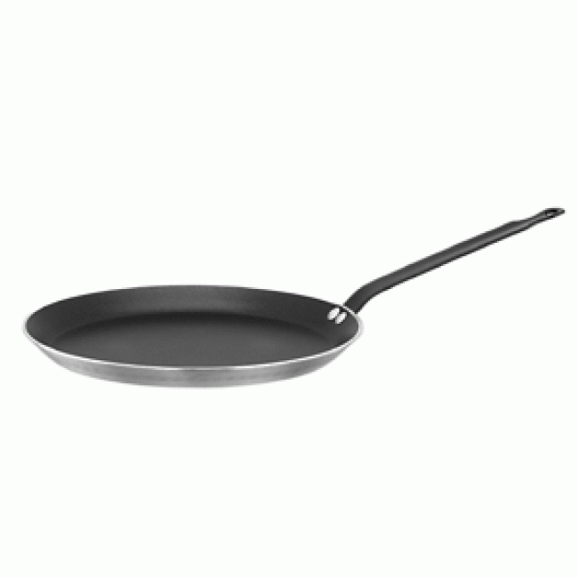 Характеристики Сковорода для блинов; алюминий , тефлон; D=22, H=2, L=42.5см; черный, серебрянный