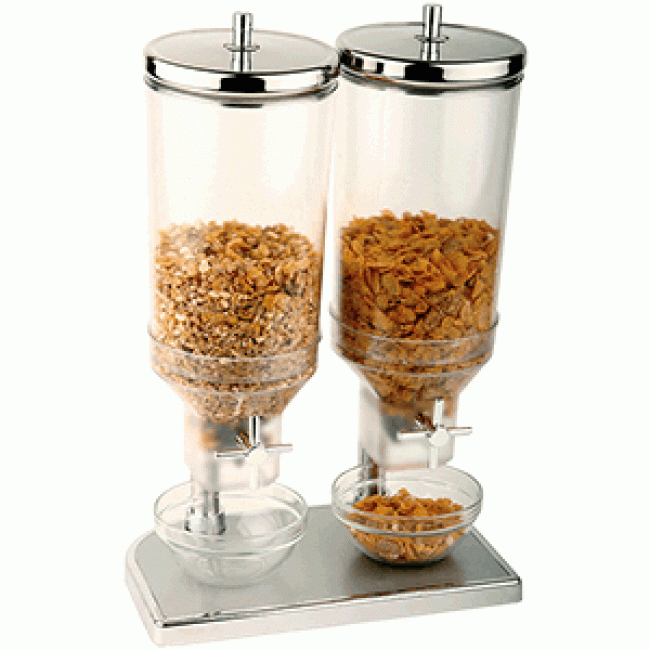 Характеристики Диспенсер для мюсли 2емкости; сталь нержавеющая , пластик; 4, 5л; , L=34, 4, B=21, 5см